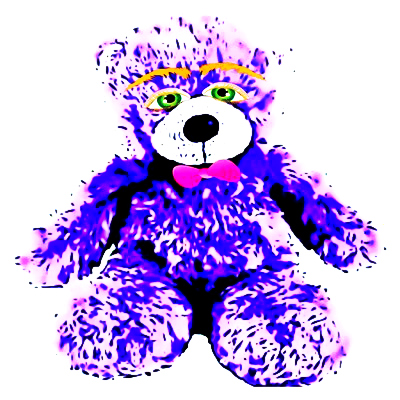 Evil Ted tried to donkey-bellow, but his ridiculous pretend-french-speak squeak more resembled a donkey’s derriere. He made an ass of himself. He slammed grubby chocolate fingers and sticky Teddy feet against Fuchsia’s chest, with the force of 1,000 sticktight fleas. Fuchsia didn’t notice a thing.